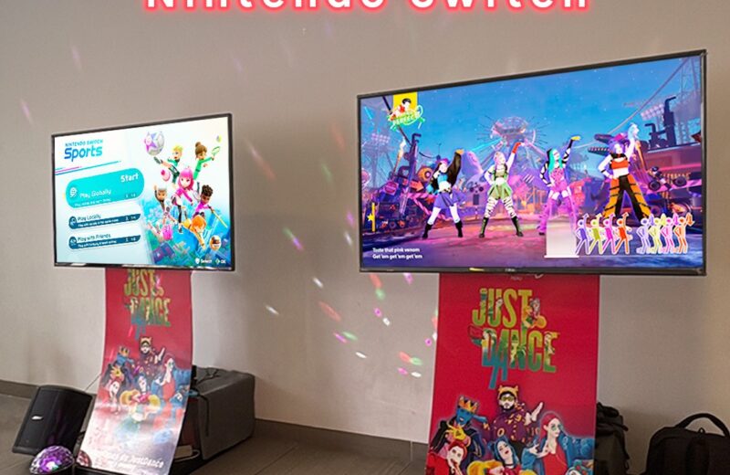 Estaciones PlayStation 5 y Nintendo Switch para eventos.